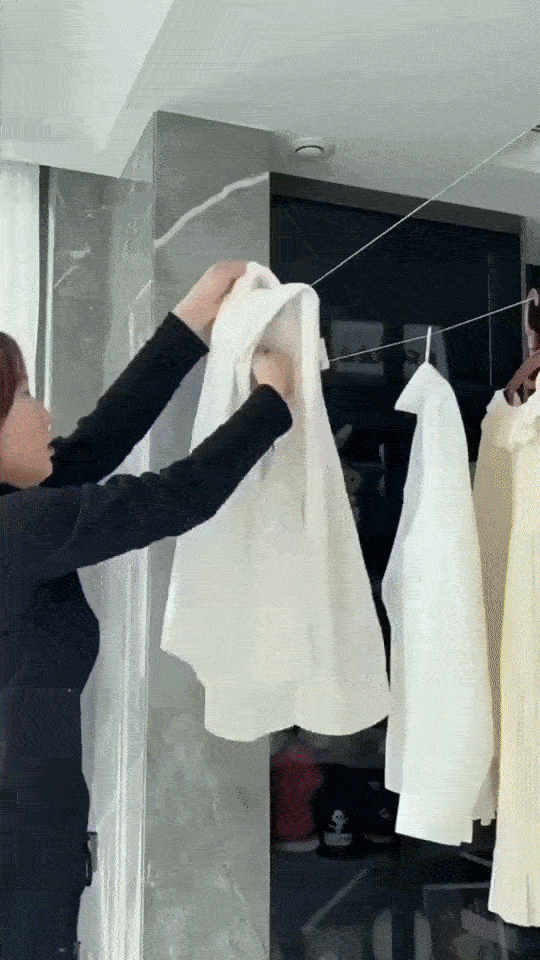 ◻️حبل غسيل داخلي وخارجي قابل للسحب، يخزن بشكل أنيق💫 عند عدم الاستخدام.